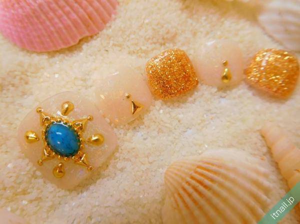 ヌーディーカラー×ゴールドフットネイル