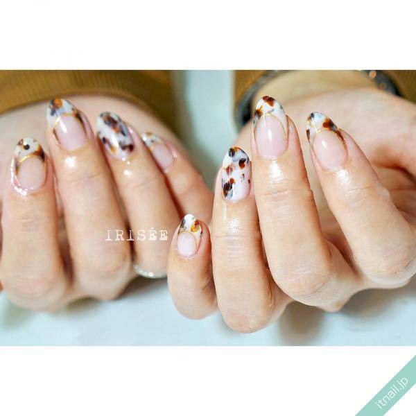 それだけ黄みがかったデザイン特有の飽きやすいデザインという印象を持つ方もいらっしゃるかもしれませんが、この乳白色ベールのかかった白べっ甲ネイルはそんな方にも新鮮な気持ちで楽しんでいただけるデザインではないでしょうか。