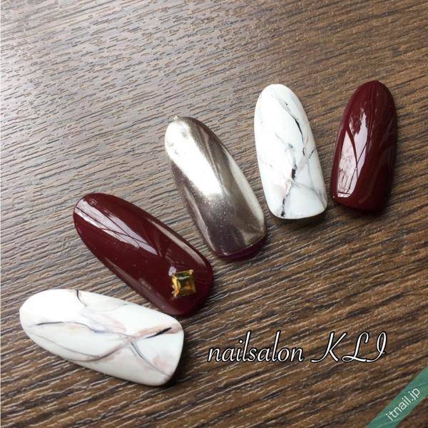 オトナの女性を演出するならボルドーできまりです。数本だけミラーネイルにして、残りの爪をボルドーで彩色してみて。簡単にレディライクな秋向けミラーネイルが完成します。