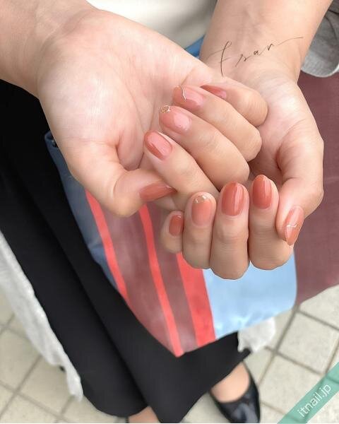 テラコッタはアートなしのワンカラーで仕上げても存在感あるカラーです。ワンカラーネイルしかできないけど、ワンカラーでは物足りない方にも満足いただけるカラーではないでしょうか。