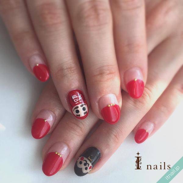 だるまは小さくアートするとゴチャゴチャしてしまうので、思い切って爪全体に描いてみて。思い思いに顔を描いて個性を出すとかわいいですよ。