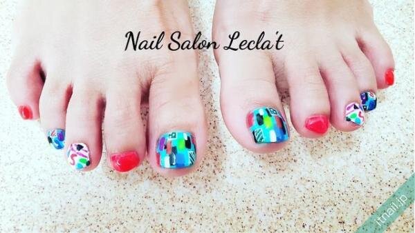 個性的なデザインをお好みの方には、1本の爪の中でたくさんの色を組み合わせてアートする、超カラフルなフットネイルをおすすめします。