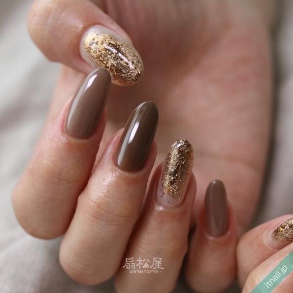 ゴールドラメをたっぷり詰め込んだネイルは、とってもエレガントですね。ブラウンやベージュ系の大人カラーでまとめているので、落ち着いた印象もあります。ハンサムなラメネイルを楽しみたい方におすすめ!