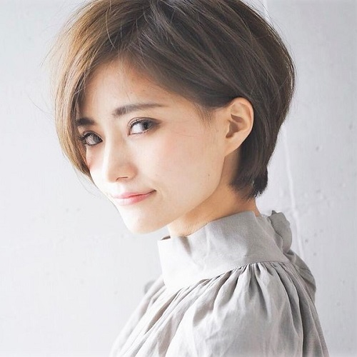 こちらも黒髪見えするハンサムショートですが、前髪の長さを少し長くして、顔周りにレイヤーを入れることで大人女子が気になるフェイスラインをカバーしてくれる髪型です。