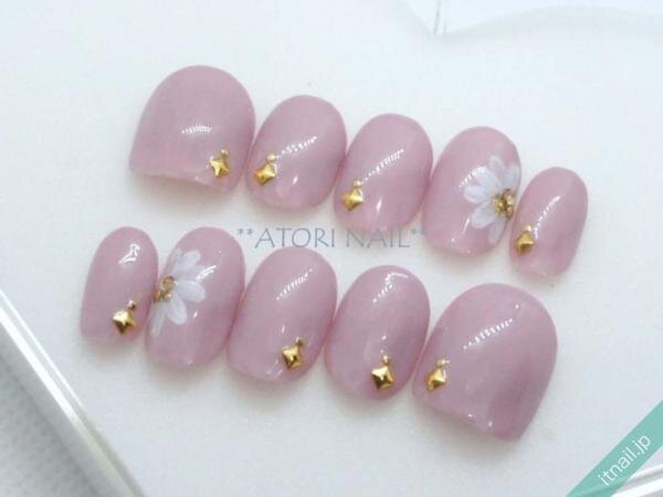 パステルピンクとフラワーの組み合わせが、指先を一気に春らしくしてくれます♡スタッズをプラスすることで、可愛らしさだけじゃなく、カッコよさも追加されますね。可愛いだけじゃ少し物足りない方にオススメです!