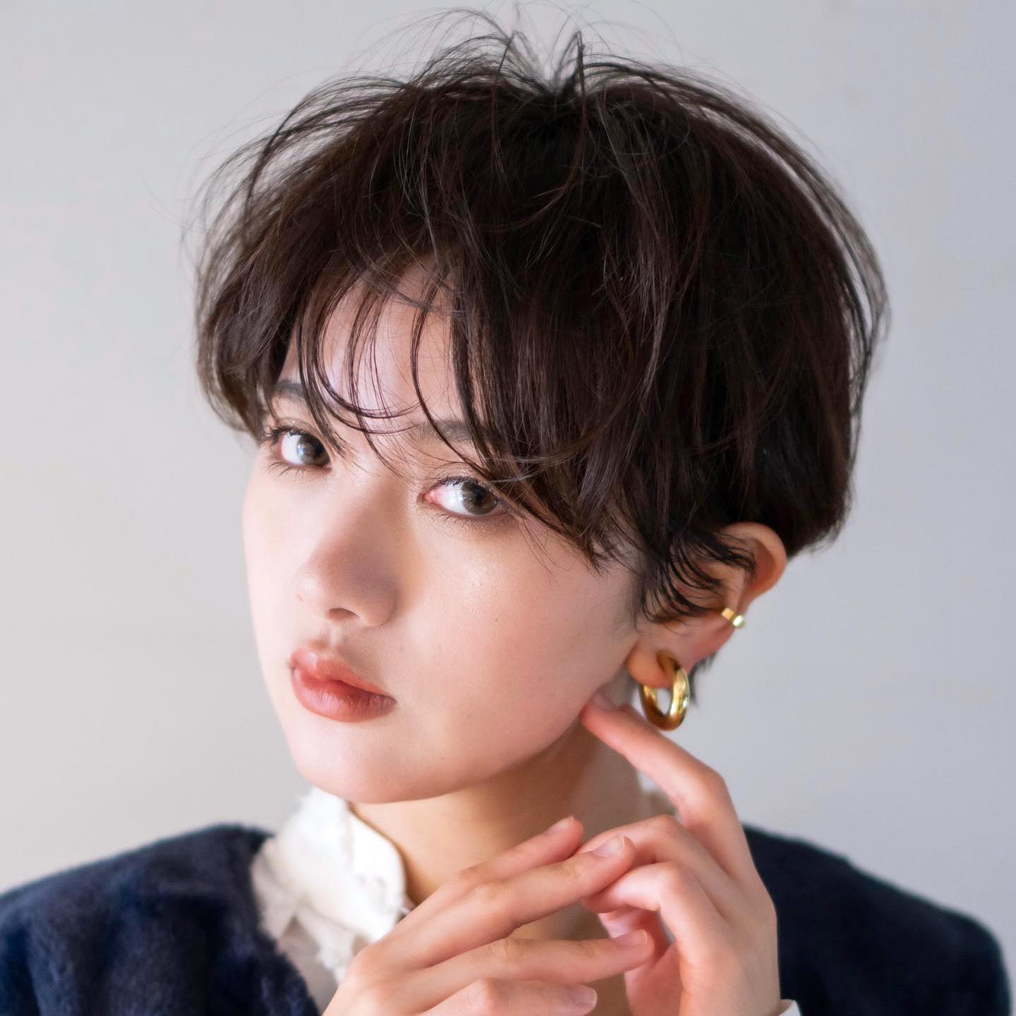 前髪ありのハンサムショートは、ナチュラルなスタイリングがおすすめです。