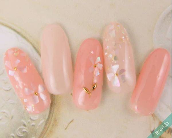 ネイルアートに用いられることの多い、シェル。爪全体に散らしたり、部分的にこれをあしらったりするデザインも素敵ですが、今回ご紹介するのは、シェルを1枚ずつ並べてフラワーモチーフを作るデザインです。オフィスネイルとして使えるデザインも沢山ありますので、ぜひチェックしてくださいね!