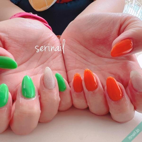 鮮やかなビタミンカラーで彩るネイルには、スキンカラーを組み合わせてみるのもおすすめです。