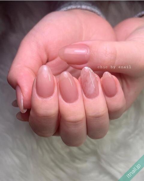 ちゅるんとしたミルクティーカラーのネイルに、抜け感の出るニュアンスデザインをオン♡ワンポイントにもやもやしたデザインを入れるだけで、こなれ感のあるネイルになります。よりミルクを足したデザインになって可愛いですね。