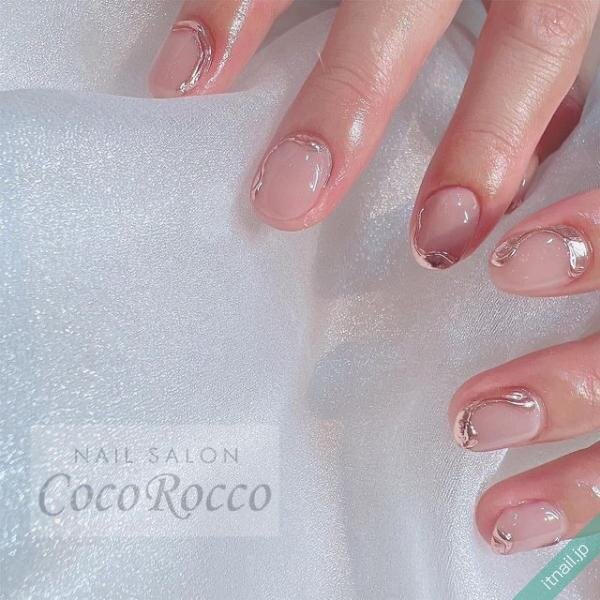 少しアートを入れたい場合はストーンやラメでキラキラにしてもいいですが、メタリックジェルやミラーパウダーでスタイリッシュにしてあげるのもオススメ。さりげなくトレンド感を取り入れられますよ。