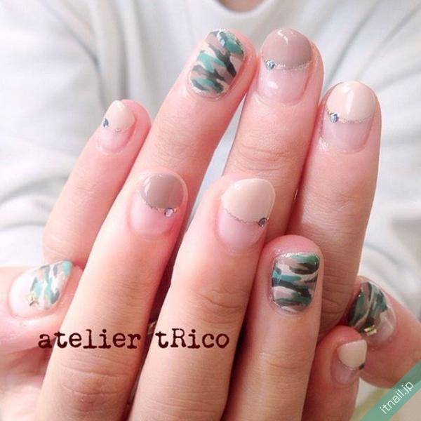 ややパンチを効かせた、マニッシュなネイルもカッコいいですよね。カモフラネイルも、クールにアレンジしてみましょう。