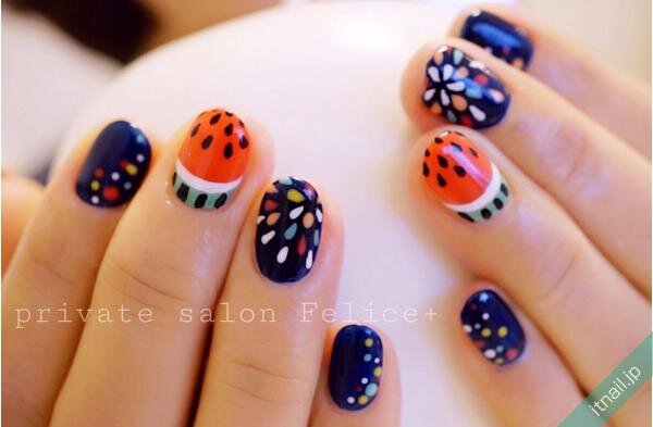 見ているだけでお祭りに行った気分になれる☆テンションが上がるネイルですね♪