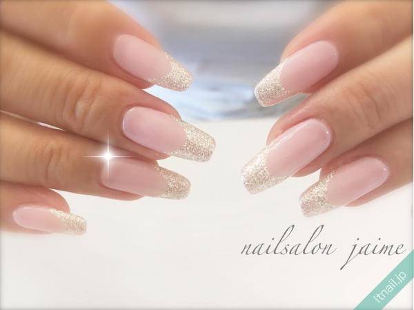 オフィスシーンからフォーマルシーンまで幅広い場面で活用できるのが、ピンク×シルバーラメのフレンチデザインです。