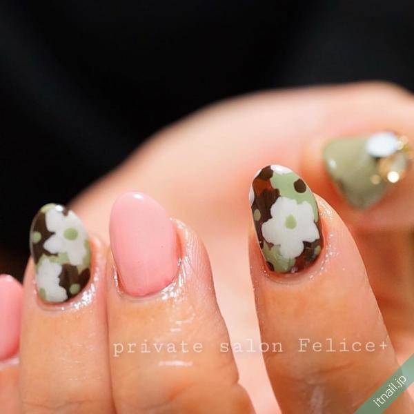 一見普通のフレンチのように見えるけど、近くでよく見ると重なり合う花びらが美しいフラワーネイルだったり、クールなカモフラージュ柄かと思いきや、花柄が隠されていたりと、見ているほうも楽しいデザインはいかがでしょうか。