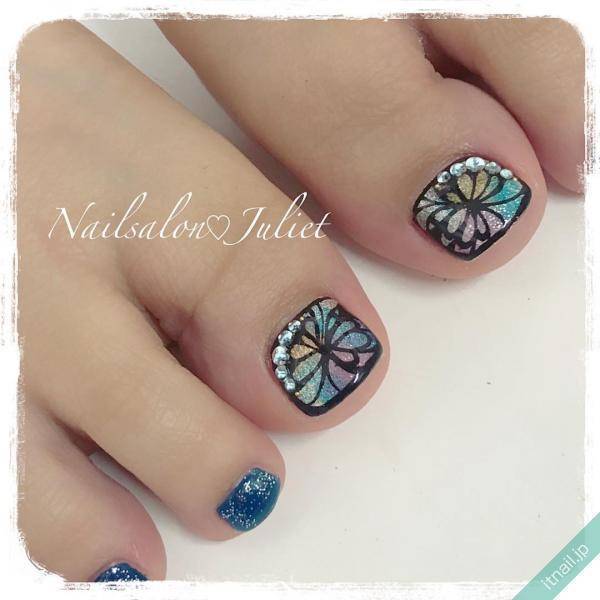 フットネイルの親指アクセントを楽しむのに、とてもぴったりなネイルデザインです。