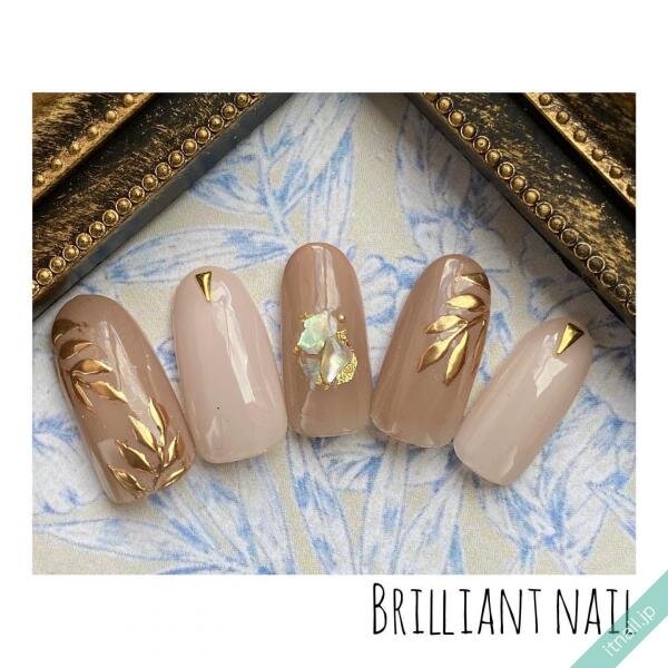 ゴールドやシルバーのメタリックカラーのミラーネイルを使いモチーフを描くことで、指先に煌びやかな輝きをもたらしてくれます。秋らしいこっくりとしたブラウン系のカラーを使っているので、ゴールドとの相性もいいですよね。モダンな印象が大人っぽいデザインです。