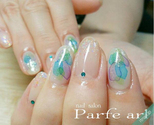 水彩画のようなたらしこみアートと雰囲気を重視するニュアンスアートは、どちらもここ数年のトレンドです。では、その2つをドッキングさせたら、どのようなネイルになるのでしょうか?