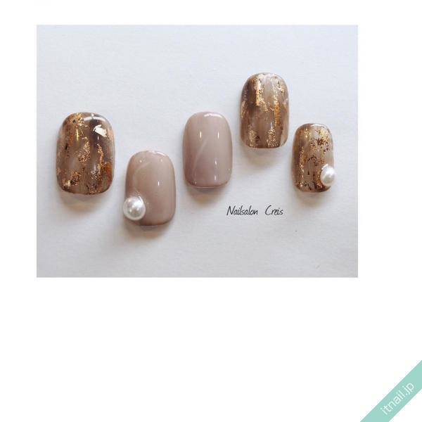 グレーカラーはブラウン系カラーやゴールドとの相性も良好ですので、これらのカラーを使ったネイルにグレーカラー×大粒パールネイルを組み合わせるのもおすすめですよ!