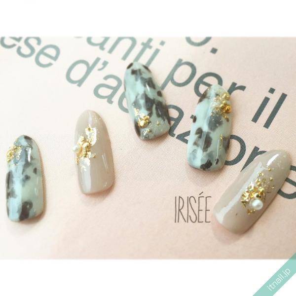 ミントとブラックはゴールドやパールとの相性も抜群ですので、金箔やホイル、パールを使ったポイントアートをプラスしてもいいかもしれませんね♪