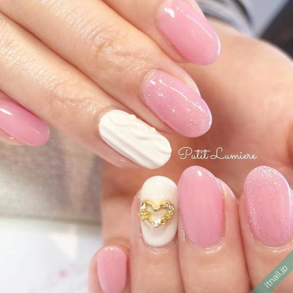 例えば、透明感のあるクリアピンクとホワイトのニットネイルを組み合わせたデザインはいかがでしょうか。冬っぽいイメージの強いニットネイルも、透け感のあるクリアピンクを組み合わせることで春っぽい雰囲気に仕上げることができるでしょう。
