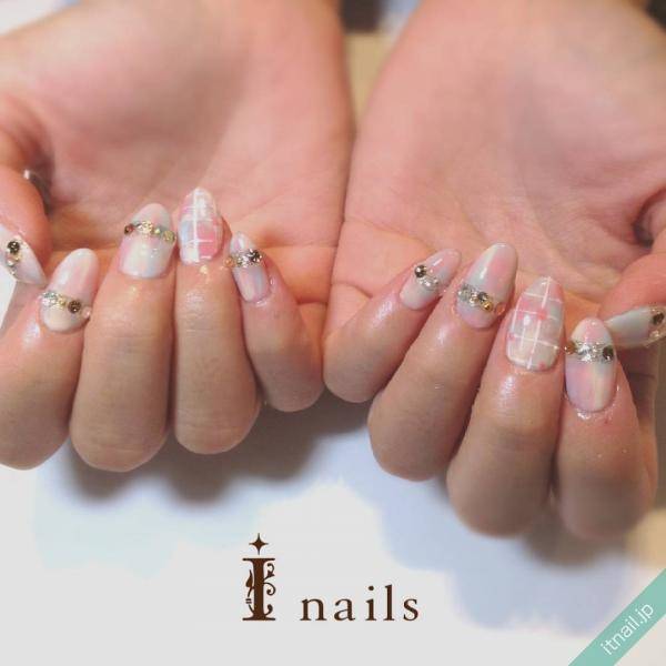 ラメやメタリックカラーでチェック柄を描いたり、ブリオンやミニサイズのスタッズを並べてチェック柄を作ったりするデザインも素敵ですね♪
