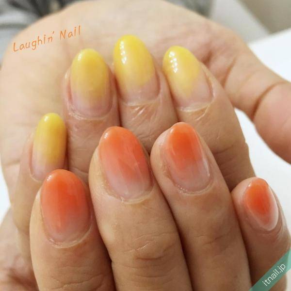 イエロー×オレンジネイルには、グラデーションアートを取り入れてみるのもおすすめです。