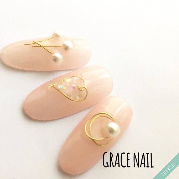 オフィスシーンでも使いやすく上品な仕上がりを楽しめるのが、ワイヤー×パールでアートするリングネイルです。