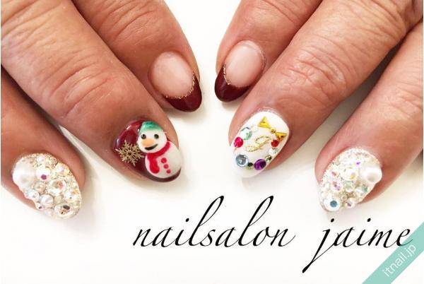 大人っぽくなりがちなフレンチネイルに雪だるまをプラスするだけで、遊び心溢れる大人ネイルを演出してくれます。
