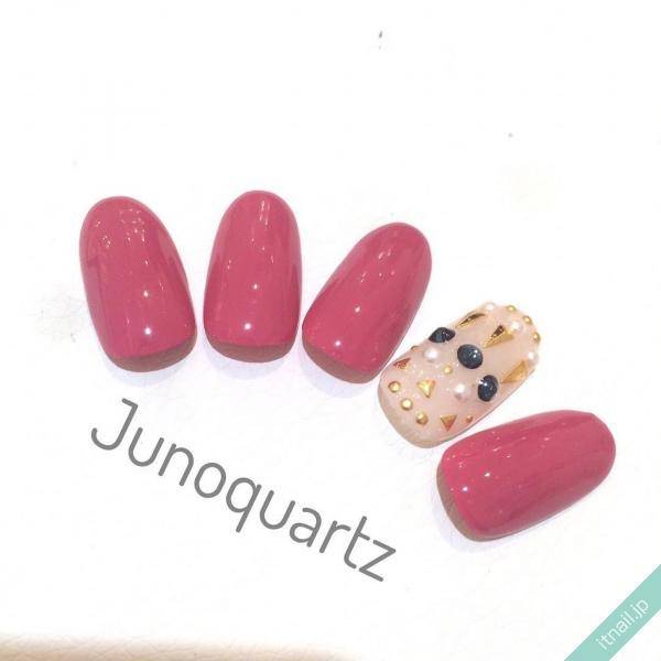 3つ目は差し色カラーを塗った部分に、ネイルパーツでデコレーションをしたネイルデザインです。スタッズやパール、ストーンを組み合わせてデコレーションをプラスしましょう。大きめのパーツを根元に組み合わせても可愛いです。リングやネックレスをするようにネイルにもアクセサリーをプラスすると、おしゃれ感もアップしますね。ネイルパーツの選び方によって、エレガントにもハードにも色々楽しめます。女性ならではのおしゃれを楽しんでみてはいかがですか?