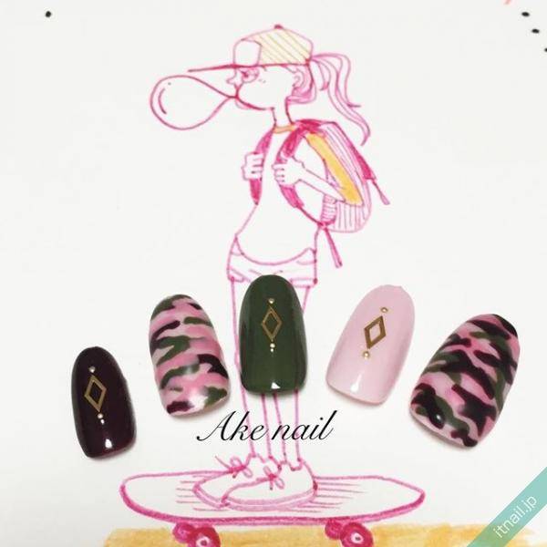 甘辛なアーミー感が可愛いカモフラージュネイルをご紹介致しました。