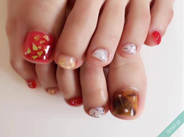 冬はフットネイルお休みなんて勿体ないです。フットネイルこそ好きなデザイン、華やかなデザインを施すことで、おしゃれをより一層楽しんでみてはいかがでしょう。