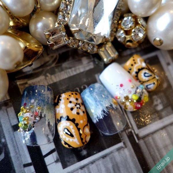 特徴的なペイズリー柄はシンプルなお洋服に合わせたい素敵なネイルデザインですね。是非ファッションのアクセントとして取り入れてみてはいかがでしょうか?