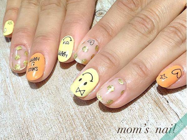 ネイルを顔に見立てて、全体的に大胆にニコちゃんマークを描くのも可愛いです。また、ネイルパーツやホログラムを使ってニコちゃんマークを作ってさりげなくデザインに取り入れても可愛いですよね。
