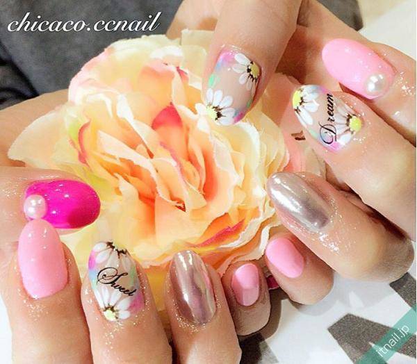 春にぴったりなミラーネイルのアレンジ。是非あなたもこの春に楽しんでみてくださいね!