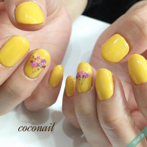 ピンクや赤色、黄色やオレンジといった春を感じる小柄な花を使うとキュートで可愛いブーケネイルになります。